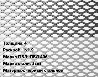 Лист просечно-вытяжной 4 1х1.9 Марка: ПВЛ 406 Сталь: 3сп5 черный стальной