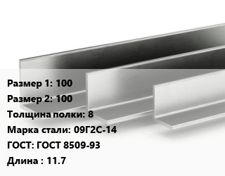 Уголок горячекатаный 100х100х8 Сталь: 09Г2С-14 ГОСТ: ГОСТ 8509-93 L=11.7
