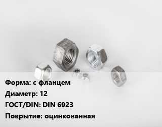 Гайка с фланцем D=12 DIN 6923 оцинкованная, упаковка 100 шт цена от 335.84 Р / кг, где купить, условия доставки в Витебске и Витебской области