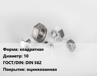 Гайка квадратная D=10 DIN 562 оцинкованная, кг цена от 3.6 Р / кг, где купить, условия доставки в Витебске и Витебской области