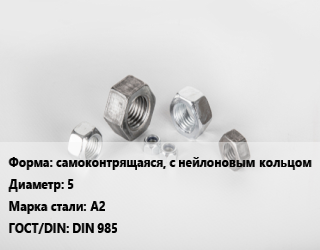 Гайка самоконтрящаяся, с нейлоновым кольцом D=5 Сталь: А2 DIN 985