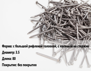 Гвоздь с большой рифленой головкой, с насечкой на стержне 3.5х80 без покрытия
