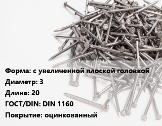 Гвоздь с увеличенной плоской головкой 3х20 ГОСТ: DIN 1160 оцинкованный
