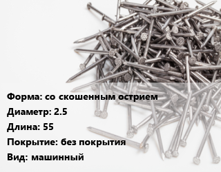 Гвоздь со скошенным острием 2.5х55 без покрытия машинный