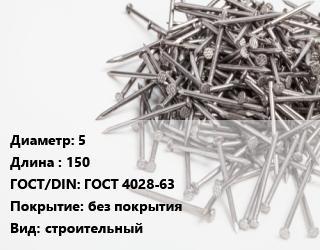 Гвоздь 5х150 ГОСТ: ГОСТ 4028-63 без покрытия строительный