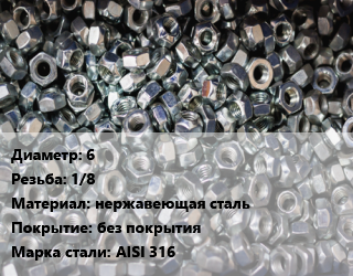 Контргайка 6 1/8 нержавеющая сталь без покрытия Сталь: AISI 316, шт цена от 104.4 Р / шт, где купить, условия доставки в Витебске и Витебской области