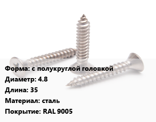 Саморез с полукруглой головкой D=4.8 L=35 сталь RAL 9005