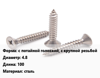 Саморез с потайной головкой, с крупной резьбой D=4.8 L=100 сталь