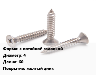 Саморез с потайной головкой D=4 L=60 желтый цинк, упаковка 4500 шт цена от 1 793 Р / кг, где купить, условия доставки в Витебске и Витебской области