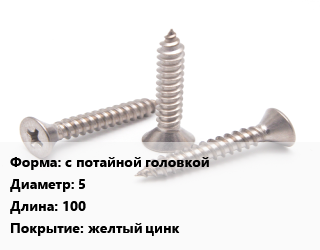 Саморез с потайной головкой D=5 L=100 желтый цинк, упаковка 90 шт цена от 424.8 Р / кг, где купить, условия доставки в Витебске и Витебской области