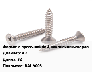 Саморез с пресс-шайбой, наконечник-сверло D=4.2 L=32 RAL 9003