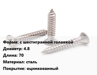 Саморез с шестигранной головкой D=4.8 L=70 сталь оцинкованный, шт цена от 2.91 Р / кг, где купить, условия доставки в Витебске и Витебской области