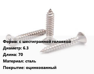 Саморез с шестигранной головкой D=6.3 L=70 сталь оцинкованный