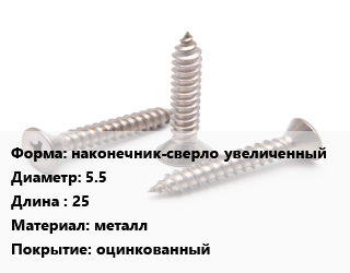 Саморез наконечник-сверло увеличенный D=5.5 L=25 металл оцинкованный, упаковка 1800 шт цена от 4 113 Р / кг, где купить, условия доставки в Витебске и Витебской области