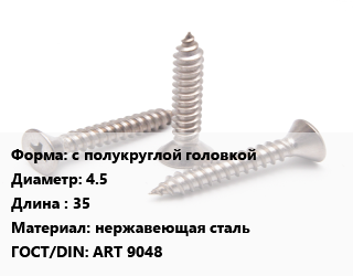 Саморез с полукруглой головкой D=4.5 L=35 нержавеющая сталь ГОСТ: ART 9048