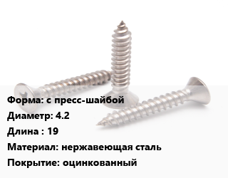Саморез с пресс-шайбой D=4.2 L=19 нержавеющая сталь оцинкованный