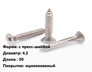 Саморез с пресс-шайбой D=4.2 L=50 оцинкованный, упаковка 4000 шт, для металла цена от 3 105 Р / кг, где купить, условия доставки в Витебске и Витебской области