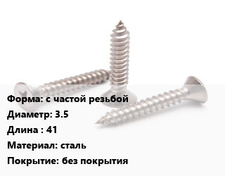 Саморез с частой резьбой D=3.5 L=41 сталь без покрытия