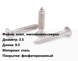 Саморез клоп, наконечник-сверло D=3.5 L=9.5 сталь фосфатированный, упаковка 1000 шт, для металла цена от 627.72 Р / кг, где купить, условия доставки в Витебске и Витебской области