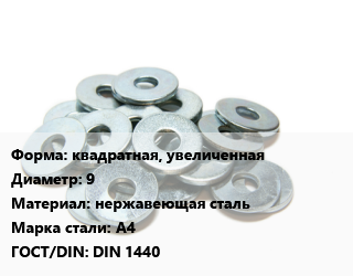 Шайба квадратная, увеличенная D=9 нержавеющая сталь Сталь: А4 ГОСТ: DIN 1440, шт цена от 26.61 Р / кг, где купить, условия доставки в Витебске и Витебской области