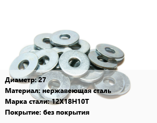 Шайба 27 нержавеющая сталь Сталь: 12Х18Н10Т без покрытия
