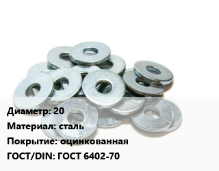 Шайба 20 сталь оцинкованная ГОСТ: ГОСТ 6402-70
