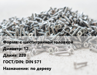 Шуруп с шестигранной головкой 12х220 ГОСТ: DIN 571 по дереву