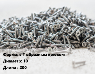 Шуруп с Г-образным крюком 10х200 оцинкованный, упаковка 100 шт, Китай цена от 2 647 Р / кг, где купить, условия доставки в Витебске и Витебской области