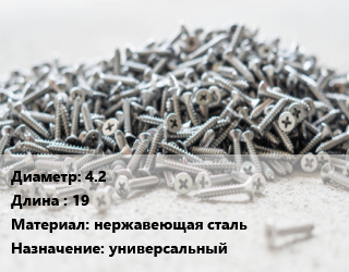 Шуруп 4.2х19 нержавеющая сталь универсальный, шт, 100 шт цена от 2.25 Р / кг, где купить, условия доставки в Витебске и Витебской области