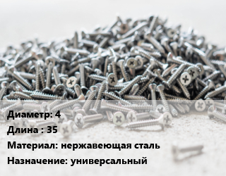 Шуруп 4х35 нержавеющая сталь универсальный, кг, А2 цена от 172.79 Р / кг, где купить, условия доставки в Витебске и Витебской области
