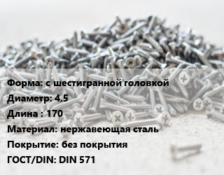 Шуруп с шестигранной головкой 4.5х170 нержавеющая сталь без покрытия ГОСТ: DIN 571, кг, А2,А4 цена от 351.6 Р / кг, где купить, условия доставки в Витебске и Витебской области