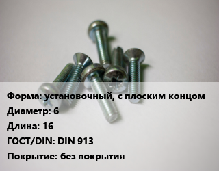Винт установочный, с плоским концом 6х16 DIN 913 без покрытия