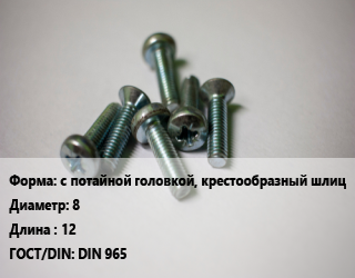 Винт с потайной головкой, крестообразный шлиц 8х12 DIN 965, цена за шт, кг цена от 2.79 Р / кг, где купить, условия доставки в Витебске и Витебской области