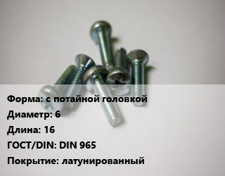 Винт с потайной головкой 6х16 DIN 965 латунированный, цена за шт, кг цена от 20.7 Р / кг, где купить, условия доставки в Витебске и Витебской области