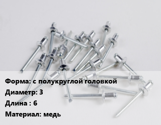 Заклепка с полукруглой головкой 3х6 медь, кг цена от 339.91 Р / шт, где купить, условия доставки в Витебске и Витебской области