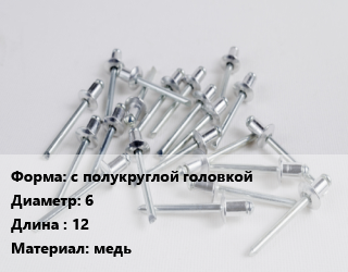 Заклепка с полукруглой головкой 6х12 медь, упаковка 100 шт цена от 213.31 Р / шт, где купить, условия доставки в Витебске и Витебской области