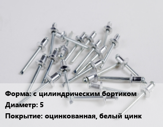 Заклепка с цилиндрическим бортиком 5 оцинкованная, белый цинк