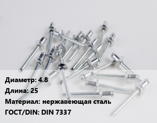 Заклепка 4.8х25 нержавеющая сталь ГОСТ: DIN 7337