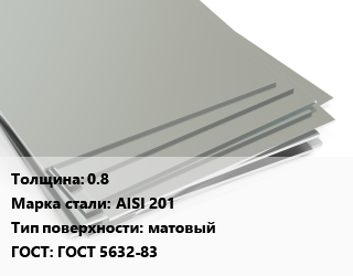 Лист нержавеющий 0.8 Сталь: AISI 201 Тип:матовый ГОСТ 5632-83