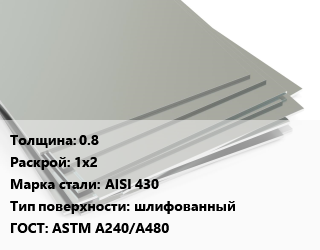 Лист нержавеющий 0.8 1х2 Сталь: AISI 430 Тип:шлифованный ASTM A240/A480