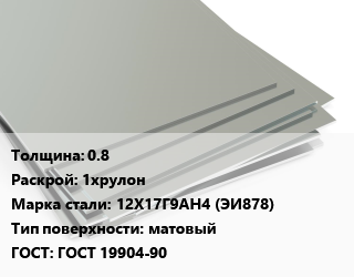 Лист нержавеющий 0.8 1хрулон Сталь: 12Х17Г9АН4 (ЭИ878) Тип:матовый ГОСТ 19904-90, х/к, по запросу цена от 195 861 Р / т, где купить, условия доставки в Витебске и Витебской области