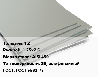 Лист нержавеющий 1.2 1.25х2.5 Сталь: AISI 430 Тип:SB, шлифованный ГОСТ 5582-75, м2 цена от 1 522 Р / т, где купить, условия доставки в Витебске и Витебской области