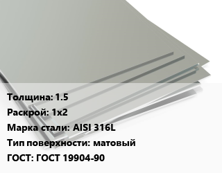 Лист нержавеющий 1.5 1х2 Сталь: AISI 316L Тип:матовый ГОСТ 19904-90