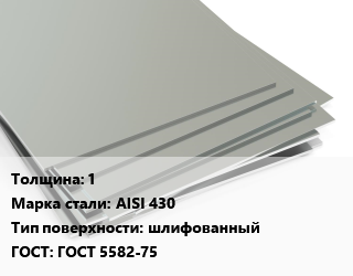 Лист нержавеющий 1 Сталь: AISI 430 Тип:шлифованный ГОСТ 5582-75