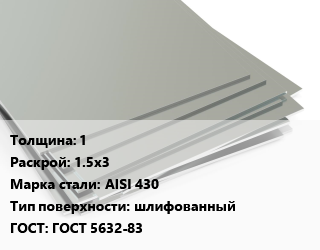 Лист нержавеющий 1 1.5х3 Сталь: AISI 430 Тип:шлифованный ГОСТ 5632-83, шт, х/к цена от 7 975 Р / т, где купить, условия доставки в Витебске и Витебской области