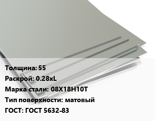 Лист нержавеющий 55 0.28хL Сталь: 08Х18Н10Т Тип:матовый ГОСТ 5632-83