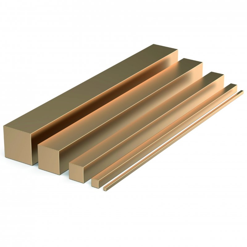 От химсостава сплава напрямую будут зависеть технические характеристики материала, что влияет на область применения бронзового квадрата. В качестве исходно сырь используется безоловянная, бериллиевая и оловянно-цинковая бронза. Наличие в сплаве легирующих элементов позволяет улучшить конкретные характеристики. К наиболее распространенным сплавам, используемых при производстве прутка, стоит отнести Броф6, Броф10, Бро5ц5с5, Бра5, Брамц10-, Бражнмц9-, Браж9-.